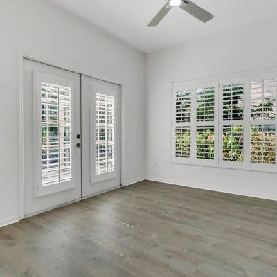 French Doors, Private Mailbox, Rain Gutters, Shade Shutter(s), Sidewalk, Sliding Doors