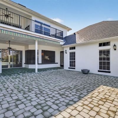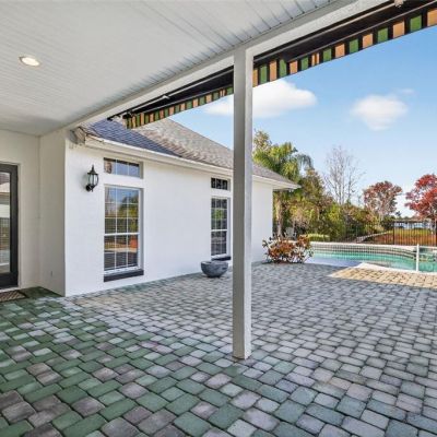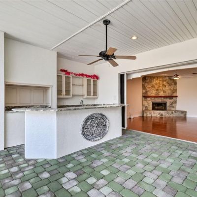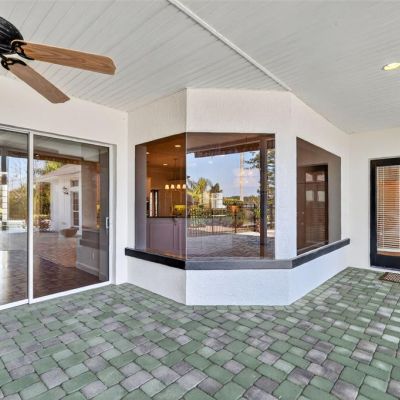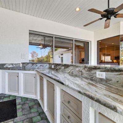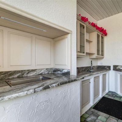 Balcony, French Doors, Lighting, Outdoor Kitchen, Rain Gutters, Sidewalk, Sliding Doors