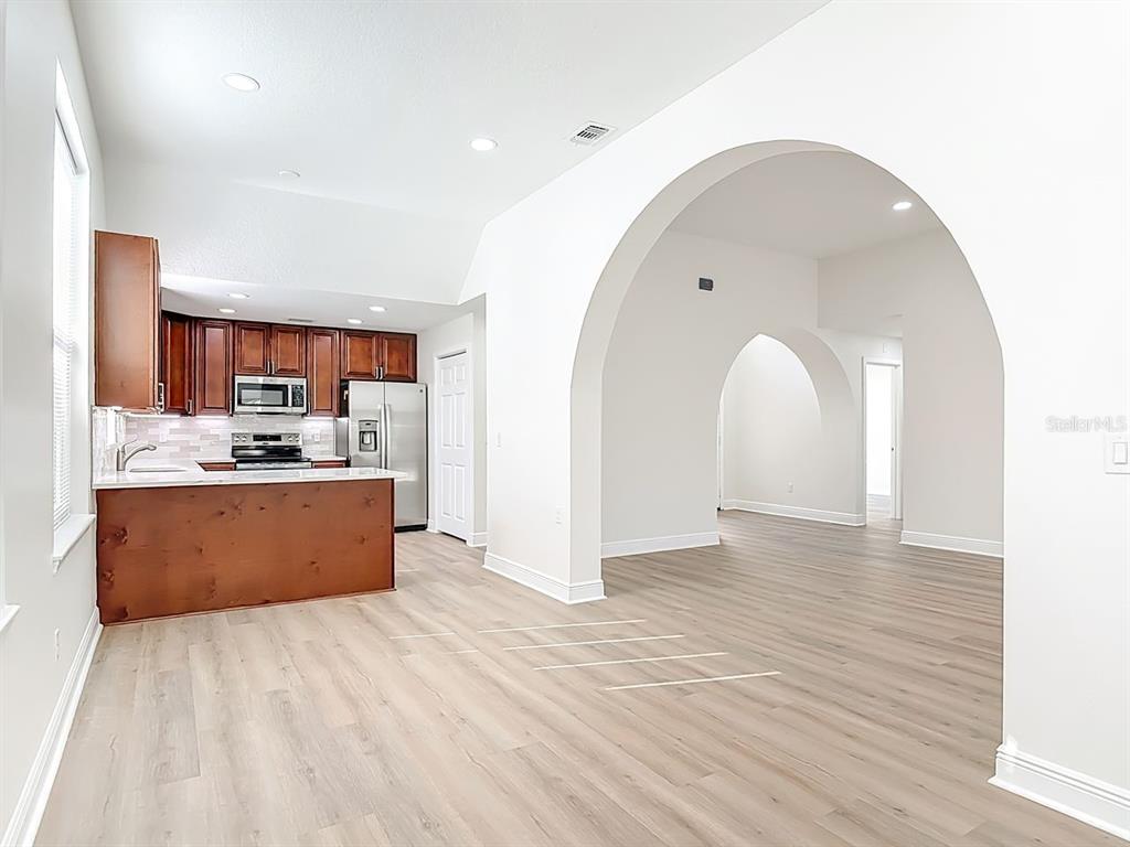 Eating Space In Kitchen, Kitchen/Family Room Combo, L Dining, Living Room/Dining Room Combo, Open Floorplan, Primary Bedroom Main Floor, Stone Counters, Thermostat, Walk-In Closet(s)