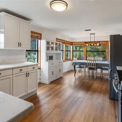 Ceiling Fan(s), Eating Space In Kitchen, Solid Wood Cabinets, Stone Counters, Thermostat, Window Treatments