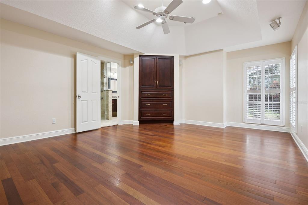 Built-in Features, Ceiling Fan(s), Central Vacuum, Crown Molding, Eating Space In Kitchen, High Ceilings, In Wall Pest System, Primary Bedroom Main Floor, Skylight(s), Solid Surface Counters, Solid Wood Cabinets, Split Bedroom, Stone Counters, Thermostat, Walk-In Closet(s), Window Treatments