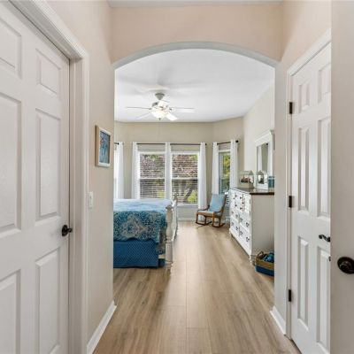 Ceiling Fan(s), Crown Molding, Open Floorplan, Solid Wood Cabinets, Split Bedroom, Stone Counters, Thermostat, Walk-In Closet(s)