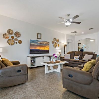 Ceiling Fan(s), Eating Space In Kitchen, High Ceilings, Kitchen/Family Room Combo, Open Floorplan, Solid Surface Counters, Split Bedroom, Tray Ceiling(s)