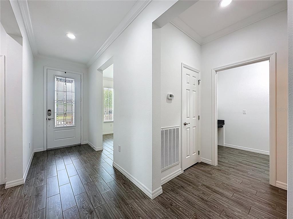 Accessibility Features, Built-in Features, Ceiling Fan(s), Crown Molding, High Ceilings, Open Floorplan, Primary Bedroom Main Floor, Solid Wood Cabinets, Split Bedroom, Stone Counters, Thermostat, Walk-In Closet(s), Window Treatments