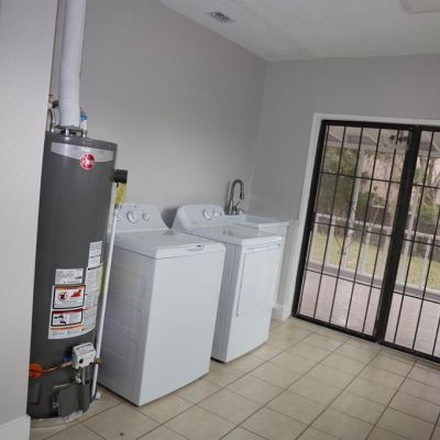 Dryer, Gas Water Heater, Microwave, Range, Refrigerator, Washer