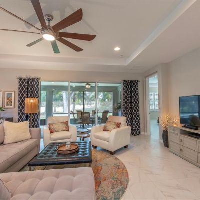 Ceiling Fan(s), Coffered Ceiling(s), High Ceilings, In Wall Pest System, Living Room/Dining Room Combo, Primary Bedroom Main Floor, Split Bedroom, Stone Counters, Thermostat, Walk-In Closet(s), Window Treatments