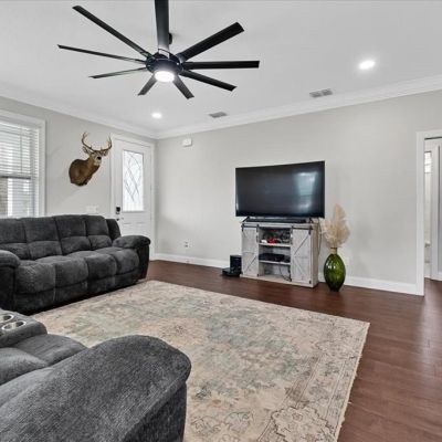 Built-in Features, Ceiling Fan(s), Eating Space In Kitchen, Living Room/Dining Room Combo, Open Floorplan, Solid Surface Counters, Solid Wood Cabinets, Split Bedroom, Stone Counters, Thermostat, Walk-In Closet(s), Window Treatments