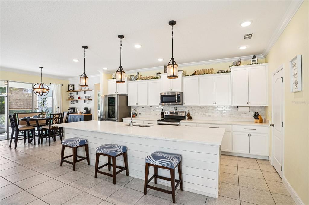 Ceiling Fan(s), Crown Molding, Eating Space In Kitchen, High Ceilings, Kitchen/Family Room Combo, Open Floorplan, Primary Bedroom Main Floor, Stone Counters, Walk-In Closet(s), Window Treatments