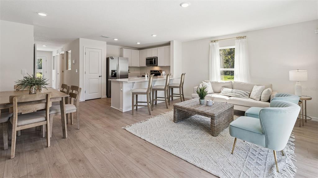 Eating Space In Kitchen, Kitchen/Family Room Combo, Living Room/Dining Room Combo, Open Floorplan, PrimaryBedroom Upstairs, Solid Surface Counters, Stone Counters, Thermostat, Walk-In Closet(s)
