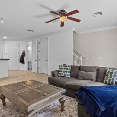 Ceiling Fan(s), Crown Molding, High Ceilings, Living Room/Dining Room Combo, Open Floorplan, PrimaryBedroom Upstairs, Stone Counters, Walk-In Closet(s)