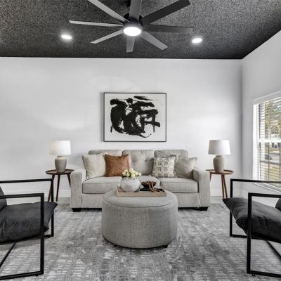 Ceiling Fan(s), Eating Space In Kitchen, High Ceilings, Open Floorplan, Primary Bedroom Main Floor, Solid Wood Cabinets, Split Bedroom, Stone Counters, Thermostat, Walk-In Closet(s)