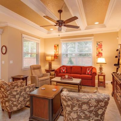 Ceiling Fan(s), Crown Molding, High Ceilings, In Wall Pest System, Living Room/Dining Room Combo, Open Floorplan, PrimaryBedroom Upstairs, Solid Surface Counters, Solid Wood Cabinets, Stone Counters, Thermostat, Tray Ceiling(s), Walk-In Closet(s), Window Treatments