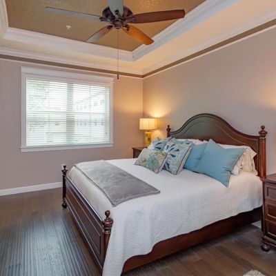 Ceiling Fan(s), Crown Molding, High Ceilings, In Wall Pest System, Living Room/Dining Room Combo, Open Floorplan, PrimaryBedroom Upstairs, Solid Surface Counters, Solid Wood Cabinets, Stone Counters, Thermostat, Tray Ceiling(s), Walk-In Closet(s), Window Treatments