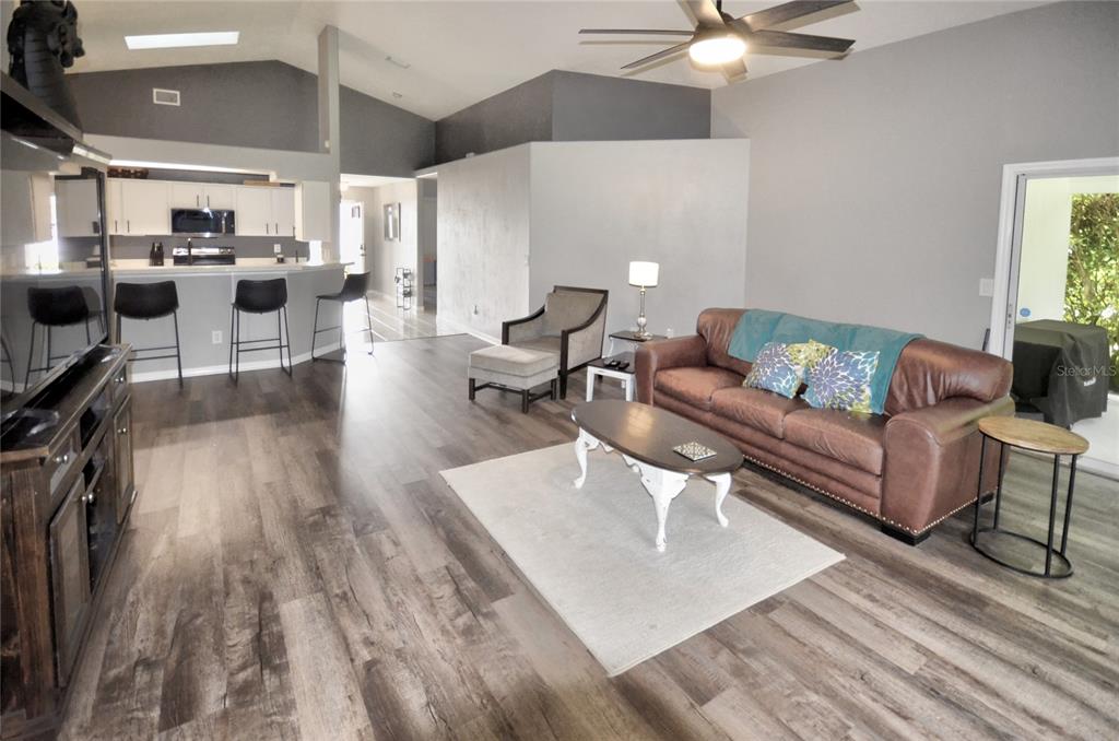 Cathedral Ceiling(s), Ceiling Fan(s), Eating Space In Kitchen, High Ceilings, Kitchen/Family Room Combo, Living Room/Dining Room Combo, Open Floorplan, Thermostat