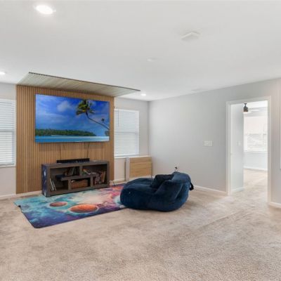 Ceiling Fan(s), Eating Space In Kitchen, High Ceilings, Kitchen/Family Room Combo, Open Floorplan, PrimaryBedroom Upstairs, Solid Surface Counters, Solid Wood Cabinets, Split Bedroom, Stone Counters, Thermostat, Walk-In Closet(s), Window Treatments