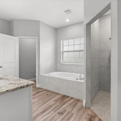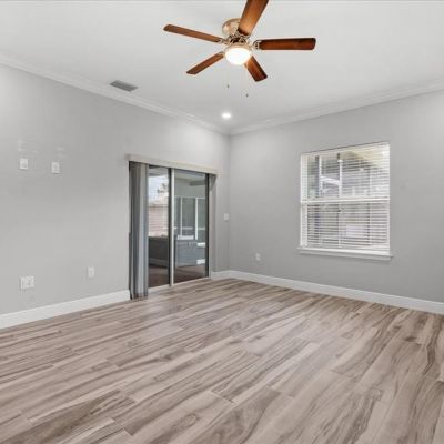 Crown Molding, Eating Space In Kitchen, Kitchen/Family Room Combo, Open Floorplan, Primary Bedroom Main Floor, Split Bedroom, Stone Counters, Walk-In Closet(s), Window Treatments