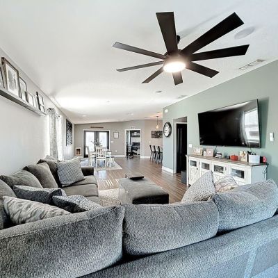 Cathedral Ceiling(s), Ceiling Fan(s), Crown Molding, Eating Space In Kitchen, Kitchen/Family Room Combo, Living Room/Dining Room Combo, Open Floorplan, Primary Bedroom Main Floor, Split Bedroom, Stone Counters, Thermostat, Window Treatments