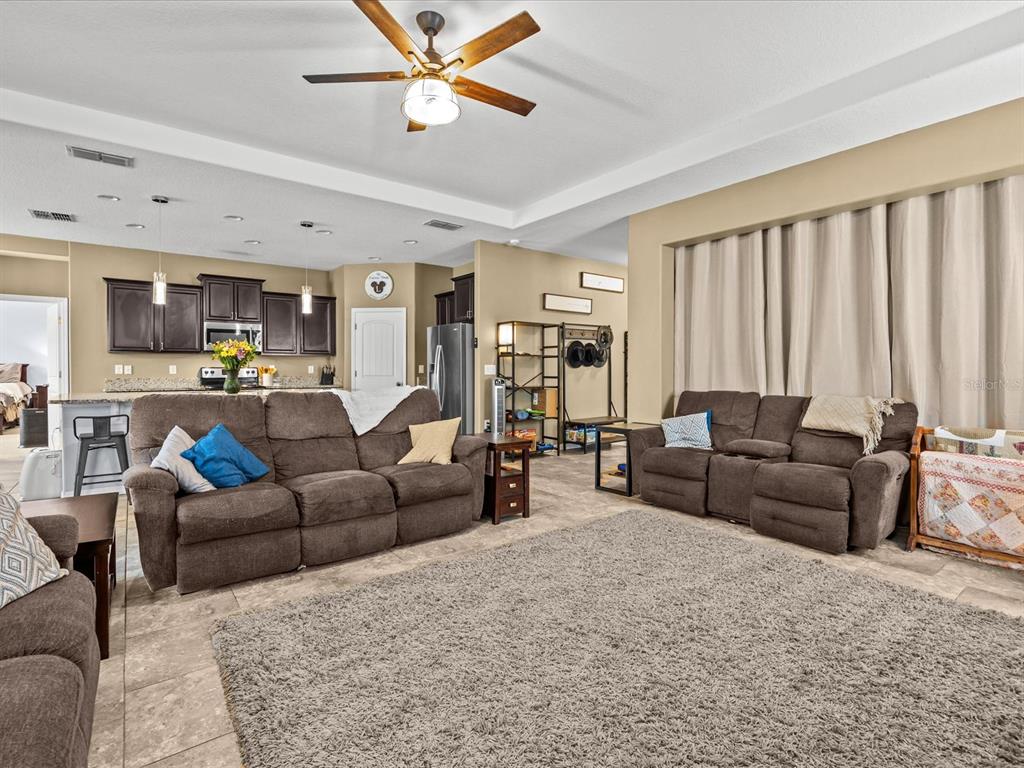 Ceiling Fan(s), Eating Space In Kitchen, Kitchen/Family Room Combo, Primary Bedroom Main Floor, Solid Wood Cabinets, Split Bedroom, Stone Counters, Thermostat, Walk-In Closet(s), Window Treatments