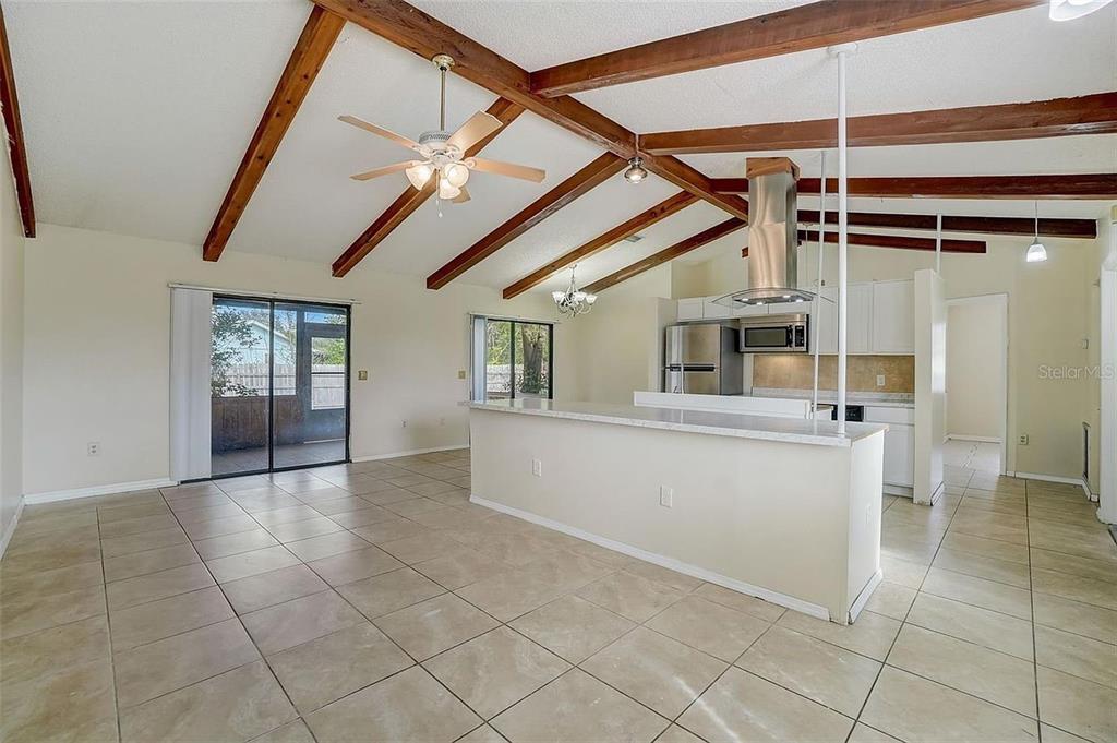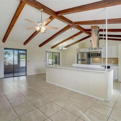 Ceiling Fan(s), Eating Space In Kitchen, Kitchen/Family Room Combo, Living Room/Dining Room Combo, Open Floorplan, Primary Bedroom Main Floor, Solid Surface Counters, Split Bedroom, Thermostat, Vaulted Ceiling(s), Walk-In Closet(s), Window Treatments