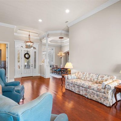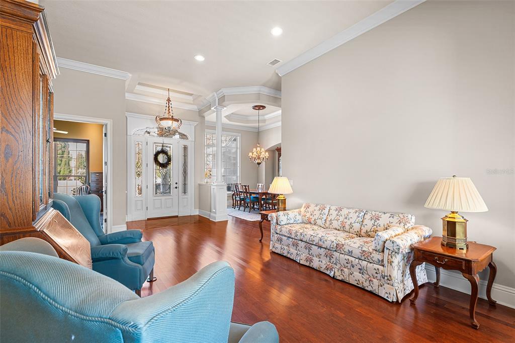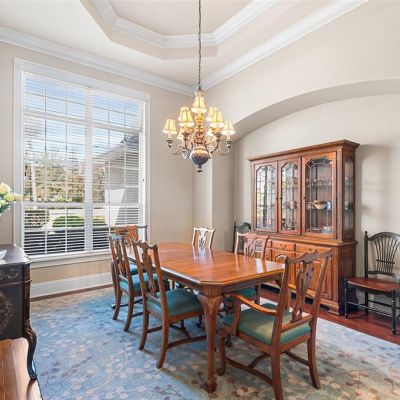 Built-in Features, Ceiling Fan(s), Coffered Ceiling(s), Crown Molding, Eating Space In Kitchen, High Ceilings, Kitchen/Family Room Combo, Primary Bedroom Main Floor, Solid Wood Cabinets, Split Bedroom, Stone Counters, Thermostat, Tray Ceiling(s), Walk-In Closet(s), Window Treatments