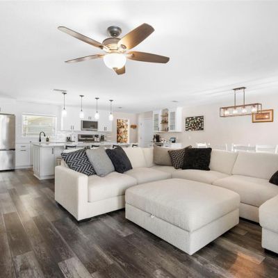Attic Ventilator, Ceiling Fan(s), Kitchen/Family Room Combo, Open Floorplan, Solid Wood Cabinets