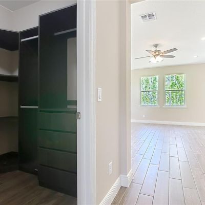 Ceiling Fan(s), Crown Molding, Eating Space In Kitchen, High Ceilings, Kitchen/Family Room Combo, Open Floorplan, Primary Bedroom Main Floor, Split Bedroom, Stone Counters, Thermostat, Walk-In Closet(s)