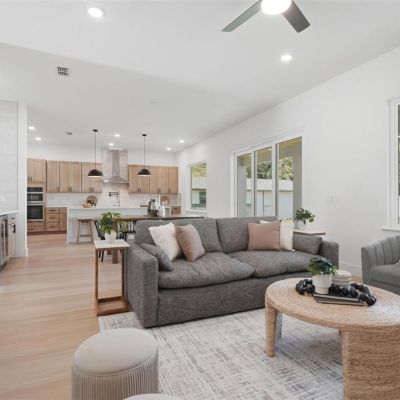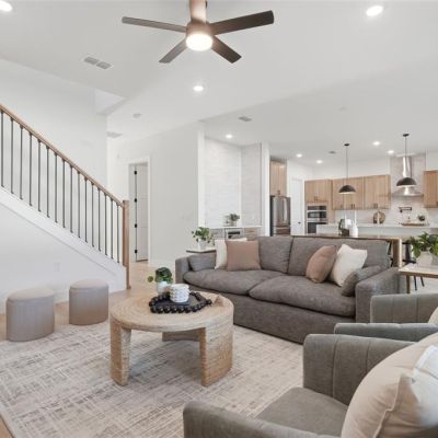 Ceiling Fan(s), High Ceilings, Living Room/Dining Room Combo, Open Floorplan, PrimaryBedroom Upstairs, Solid Surface Counters, Thermostat, Walk-In Closet(s)