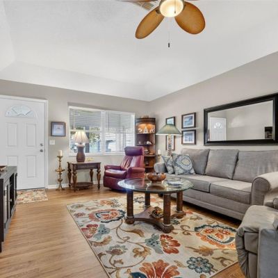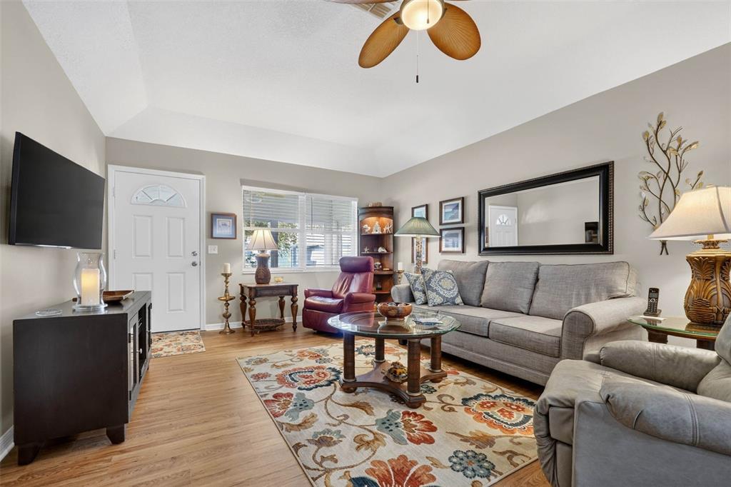 Ceiling Fan(s), Eating Space In Kitchen, High Ceilings, Living Room/Dining Room Combo, Stone Counters, Walk-In Closet(s), Window Treatments
