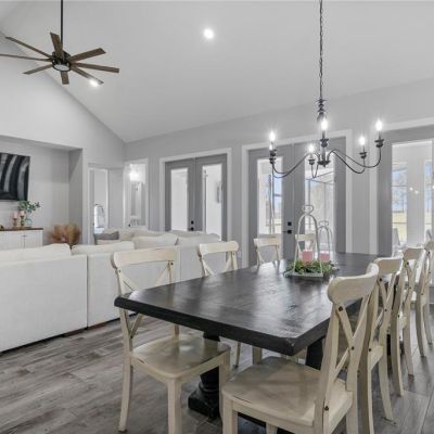 Attic Fan, Built-in Features, Ceiling Fan(s), Crown Molding, Eating Space In Kitchen, High Ceilings, Kitchen/Family Room Combo, Living Room/Dining Room Combo, Open Floorplan, Other, Primary Bedroom Main Floor, Solid Surface Counters, Solid Wood Cabinets, Split Bedroom, Stone Counters, Vaulted Ceiling(s), Walk-In Closet(s), Window Treatments