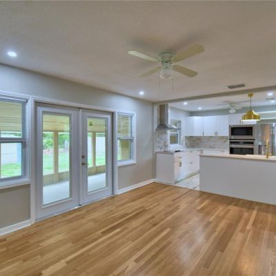 Ceiling Fan(s), Kitchen/Family Room Combo, Living Room/Dining Room Combo, Open Floorplan, Primary Bedroom Main Floor, Skylight(s), Split Bedroom, Stone Counters, Window Treatments