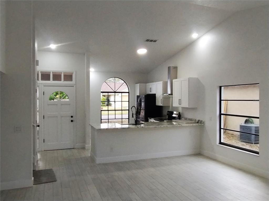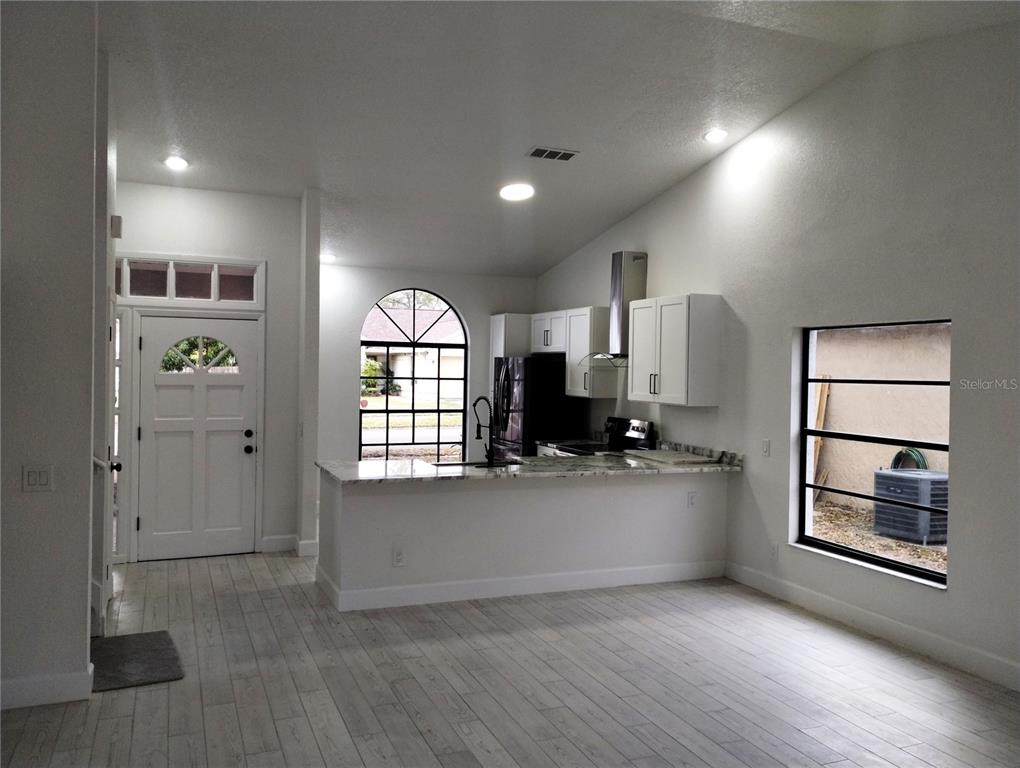 Cathedral Ceiling(s), High Ceilings, Living Room/Dining Room Combo, Open Floorplan, Primary Bedroom Main Floor, Solid Wood Cabinets, Stone Counters, Thermostat, Vaulted Ceiling(s), Walk-In Closet(s)