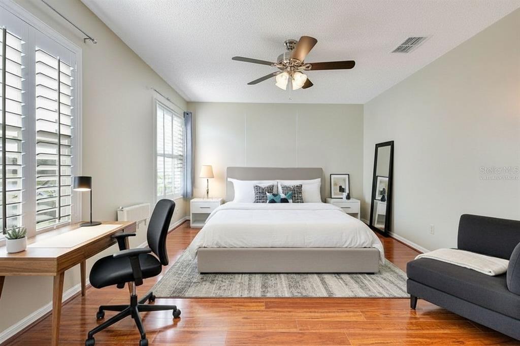 Ceiling Fan(s), Eating Space In Kitchen, High Ceilings, PrimaryBedroom Upstairs, Thermostat, Walk-In Closet(s), Window Treatments