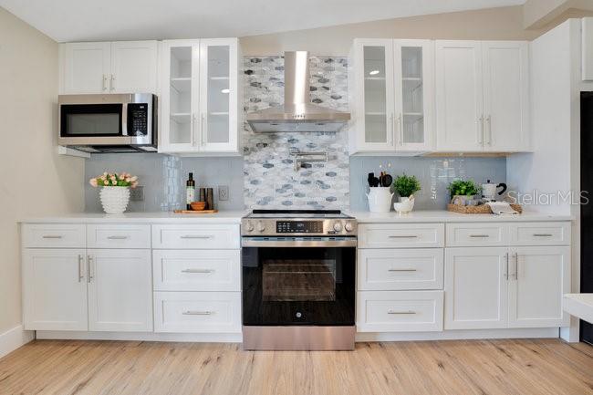 Cooktop, Dishwasher, Disposal, Dryer, Electric Water Heater, Ice Maker, Microwave, Range, Range Hood, Refrigerator, Washer