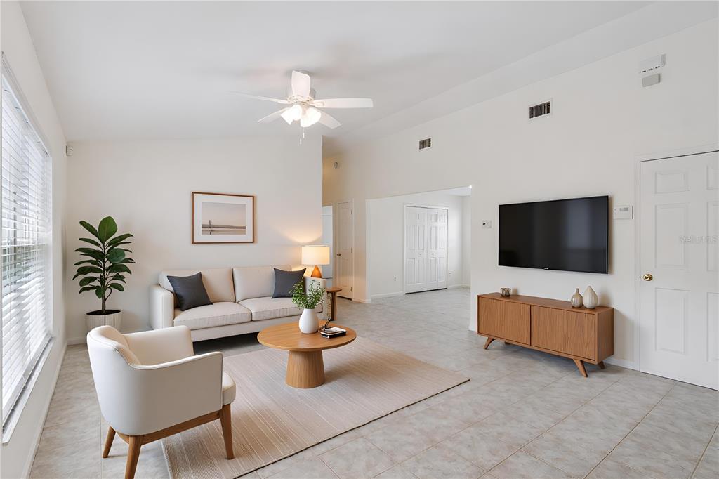 Ceiling Fan(s), High Ceilings, Primary Bedroom Main Floor, Solid Wood Cabinets, Walk-In Closet(s), Window Treatments