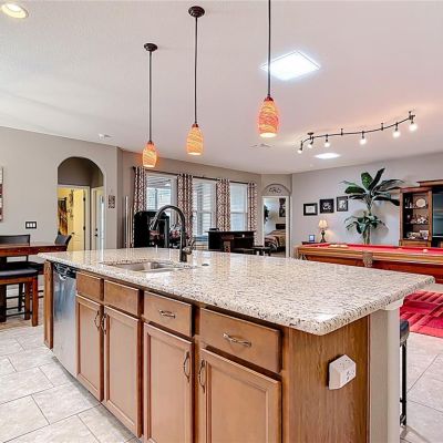 Ceiling Fan(s), High Ceilings, Open Floorplan, Skylight(s), Solid Surface Counters