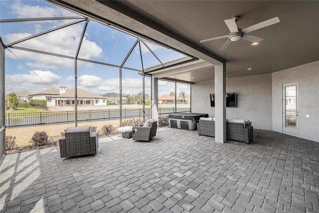 Ceiling Fan(s), Coffered Ceiling(s), Crown Molding, Dry Bar, High Ceilings, Kitchen/Family Room Combo, Living Room/Dining Room Combo, Open Floorplan, Pest Guard System, Primary Bedroom Main Floor, Solid Surface Counters, Solid Wood Cabinets, Split Bedroom, Walk-In Closet(s), Window Treatments