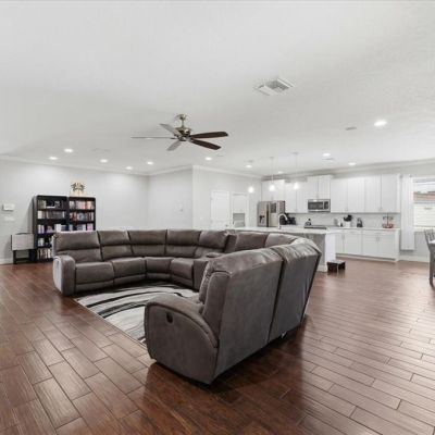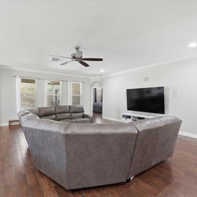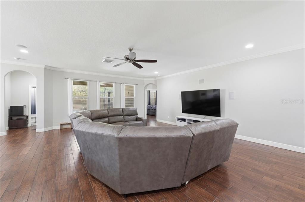 Ceiling Fan(s), Eating Space In Kitchen, High Ceilings, Open Floorplan, Solid Surface Counters, Split Bedroom, Walk-In Closet(s)