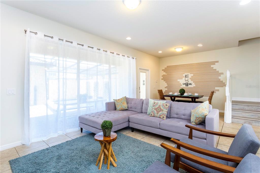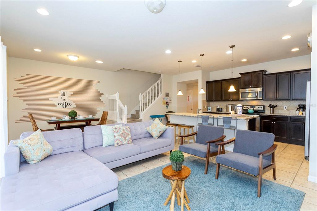 Eating Space In Kitchen, Living Room/Dining Room Combo, PrimaryBedroom Upstairs, Open Floorplan, Stone Counters, Thermostat, Window Treatments