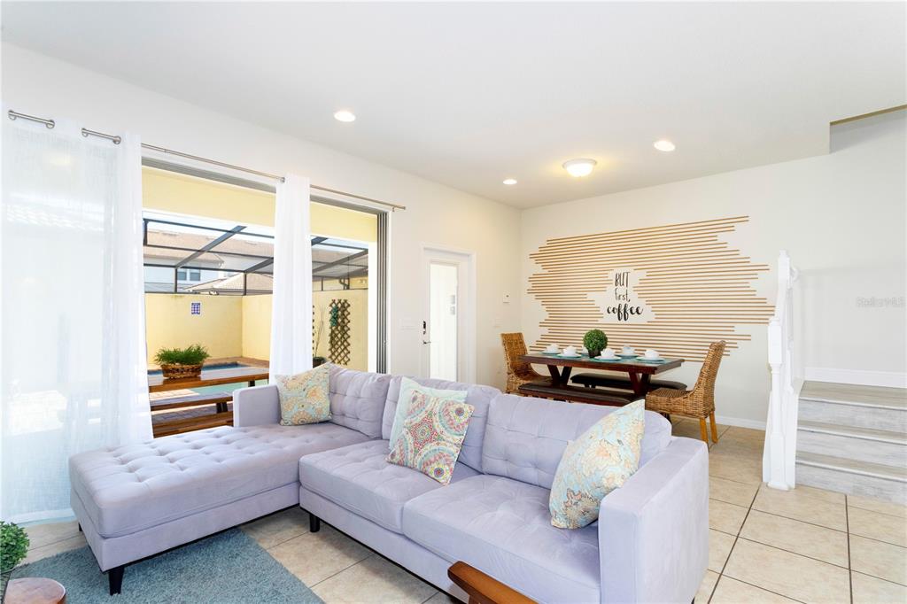 Eating Space In Kitchen, Living Room/Dining Room Combo, PrimaryBedroom Upstairs, Open Floorplan, Stone Counters, Thermostat, Window Treatments