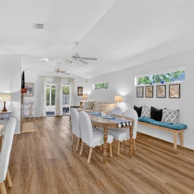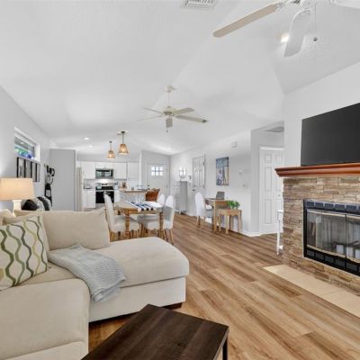 Ceiling Fan(s), Eating Space In Kitchen, High Ceilings, Open Floorplan, Solid Surface Counters, Walk-In Closet(s), Window Treatments