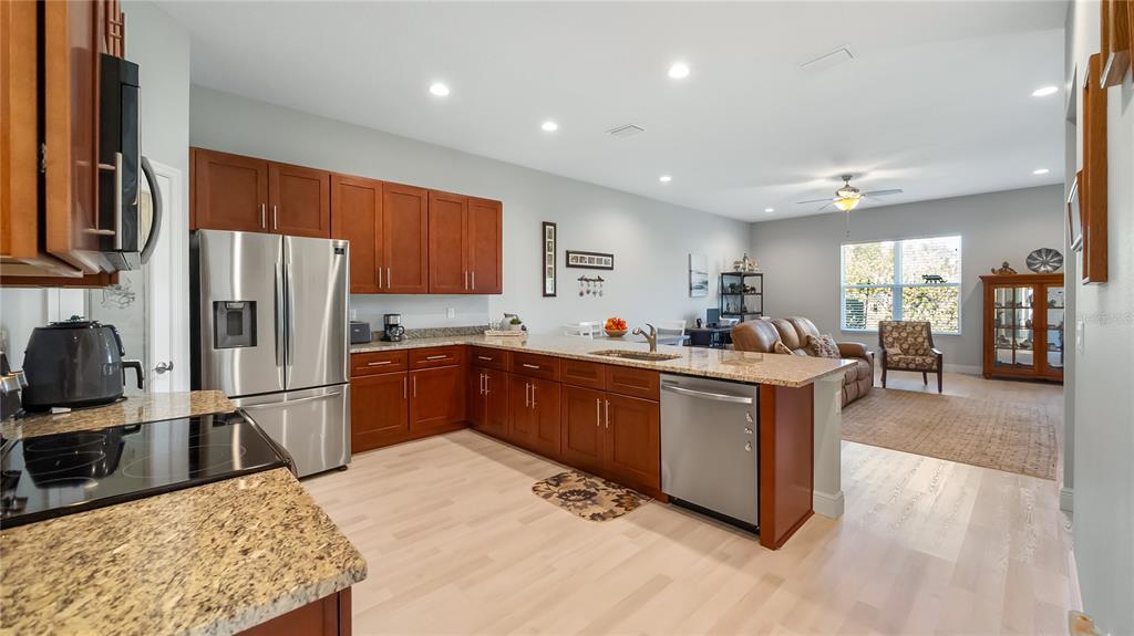 Ceiling Fan(s), High Ceilings, Open Floorplan, Split Bedroom, Stone Counters, Walk-In Closet(s)