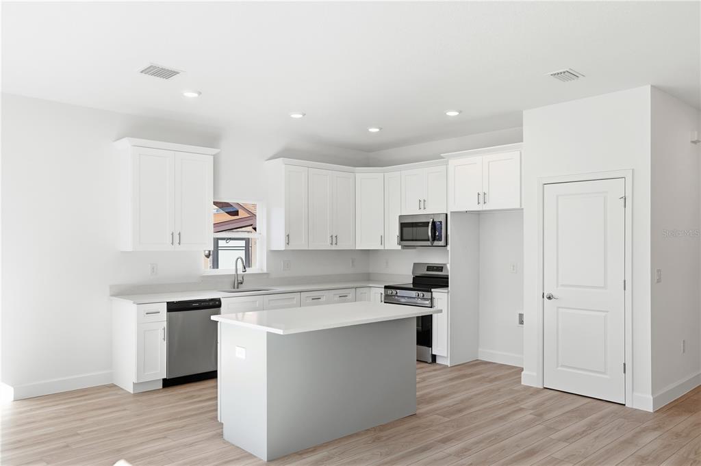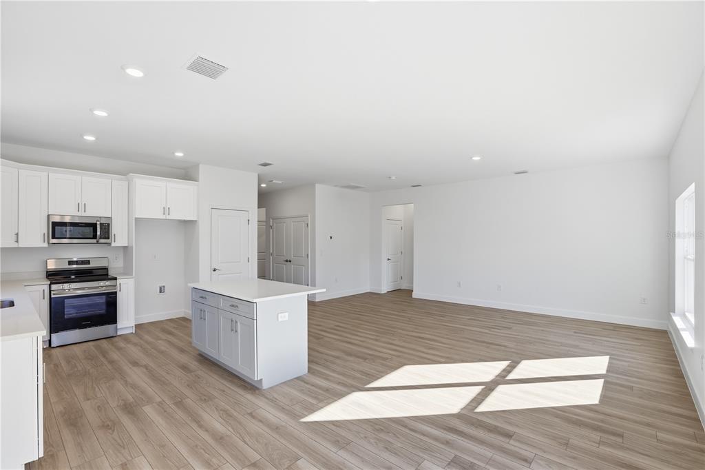 Eating Space In Kitchen, Kitchen/Family Room Combo, Solid Surface Counters, Solid Wood Cabinets, Stone Counters, Thermostat