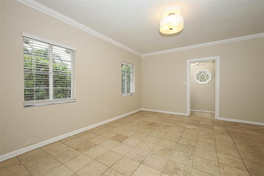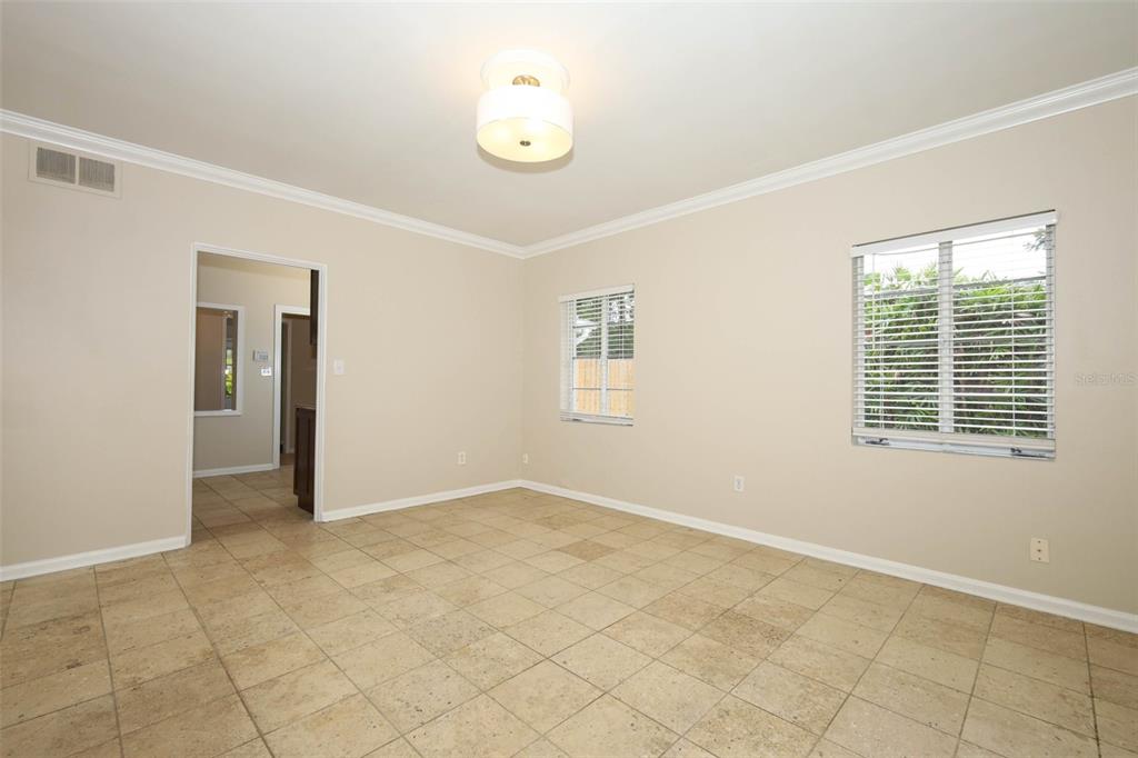 Ceiling Fan(s), Crown Molding, Living Room/Dining Room Combo, Solid Wood Cabinets, Split Bedroom, Stone Counters, Thermostat, Window Treatments