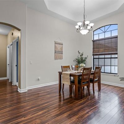 Ceiling Fan(s), Kitchen/Family Room Combo, Living Room/Dining Room Combo, Primary Bedroom Main Floor, Solid Surface Counters, Solid Wood Cabinets, Split Bedroom, Thermostat, Tray Ceiling(s)