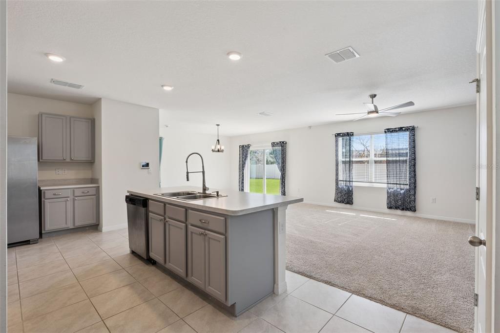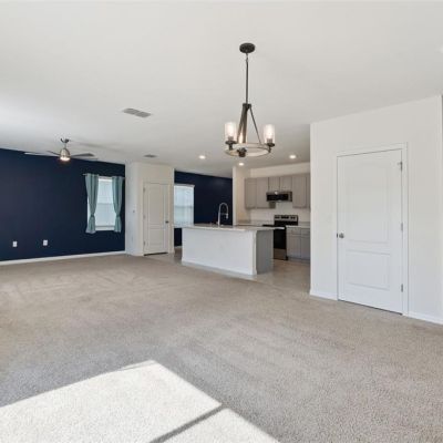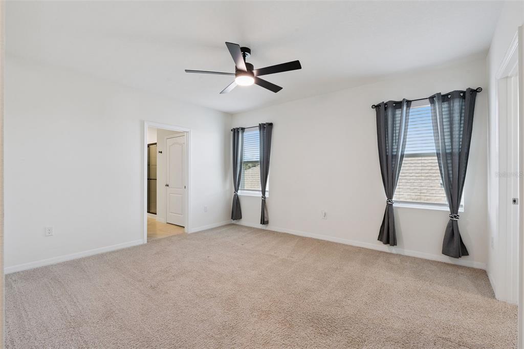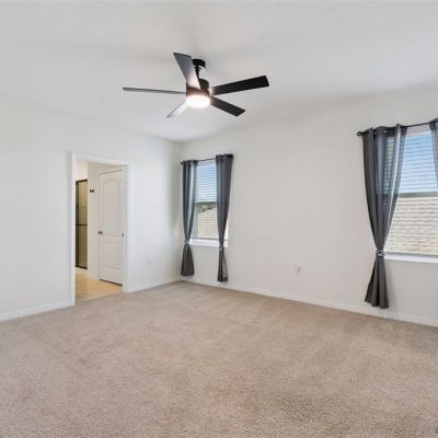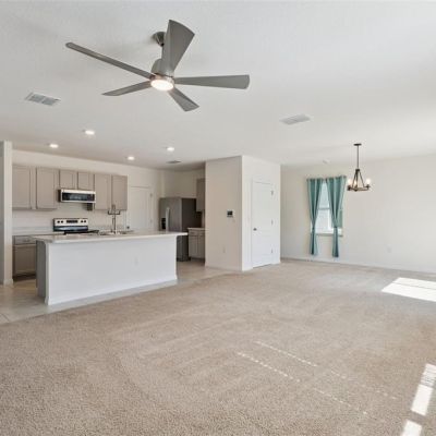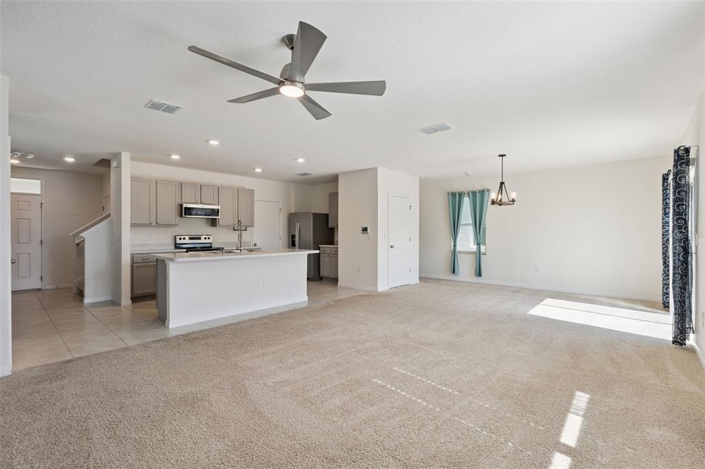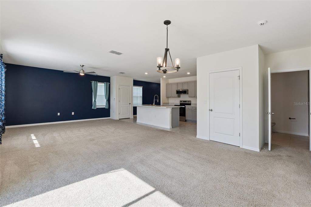 High Ceilings, Kitchen/Family Room Combo, Living Room/Dining Room Combo, Open Floorplan, PrimaryBedroom Upstairs, Smart Home, Solid Surface Counters, Split Bedroom, Walk-In Closet(s), Window Treatments