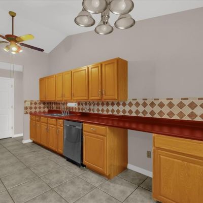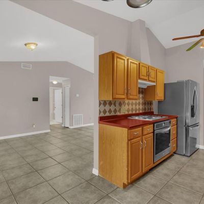 Ceiling Fan(s), Eating Space In Kitchen, Living Room/Dining Room Combo, Open Floorplan, Solid Surface Counters, Solid Wood Cabinets, Split Bedroom