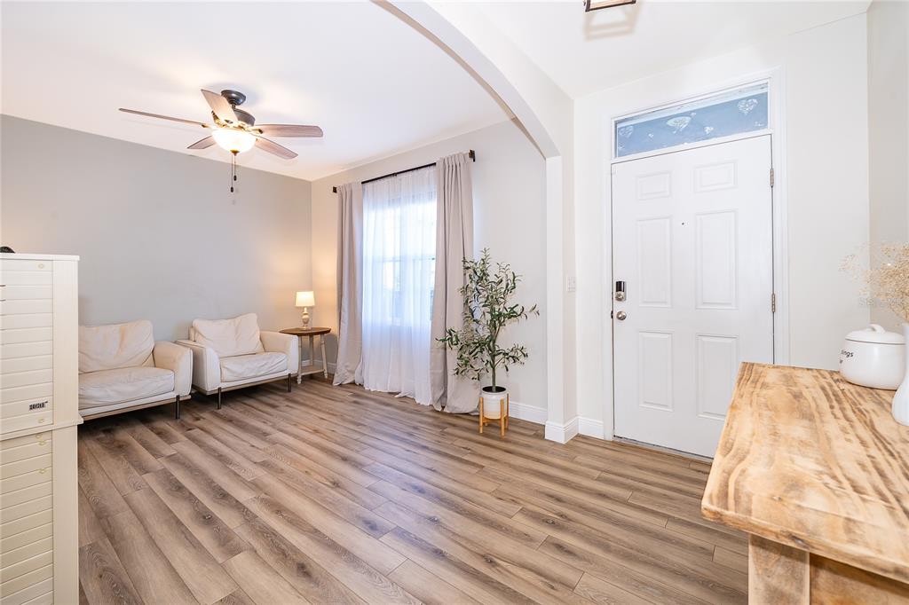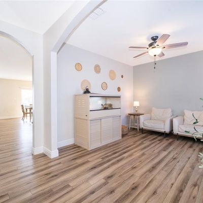 Ceiling Fan(s), Eating Space In Kitchen, Kitchen/Family Room Combo, Solid Surface Counters, Window Treatments