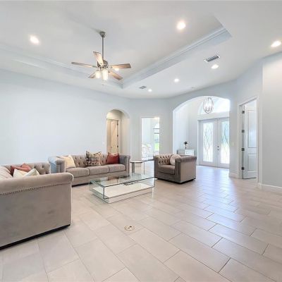 Ceiling Fan(s), Eating Space In Kitchen, High Ceilings, Solid Surface Counters, Solid Wood Cabinets, Split Bedroom, Stone Counters, Thermostat, Tray Ceiling(s), Walk-In Closet(s)