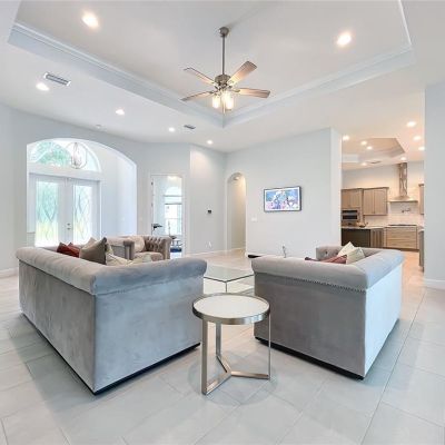Ceiling Fan(s), Eating Space In Kitchen, High Ceilings, Solid Surface Counters, Solid Wood Cabinets, Split Bedroom, Stone Counters, Thermostat, Tray Ceiling(s), Walk-In Closet(s)