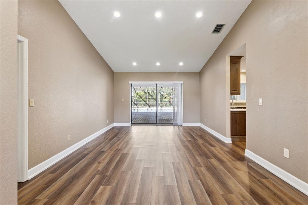 Ceiling Fan(s), Eating Space In Kitchen, High Ceilings, Kitchen/Family Room Combo, Living Room/Dining Room Combo, Open Floorplan, Stone Counters, Thermostat